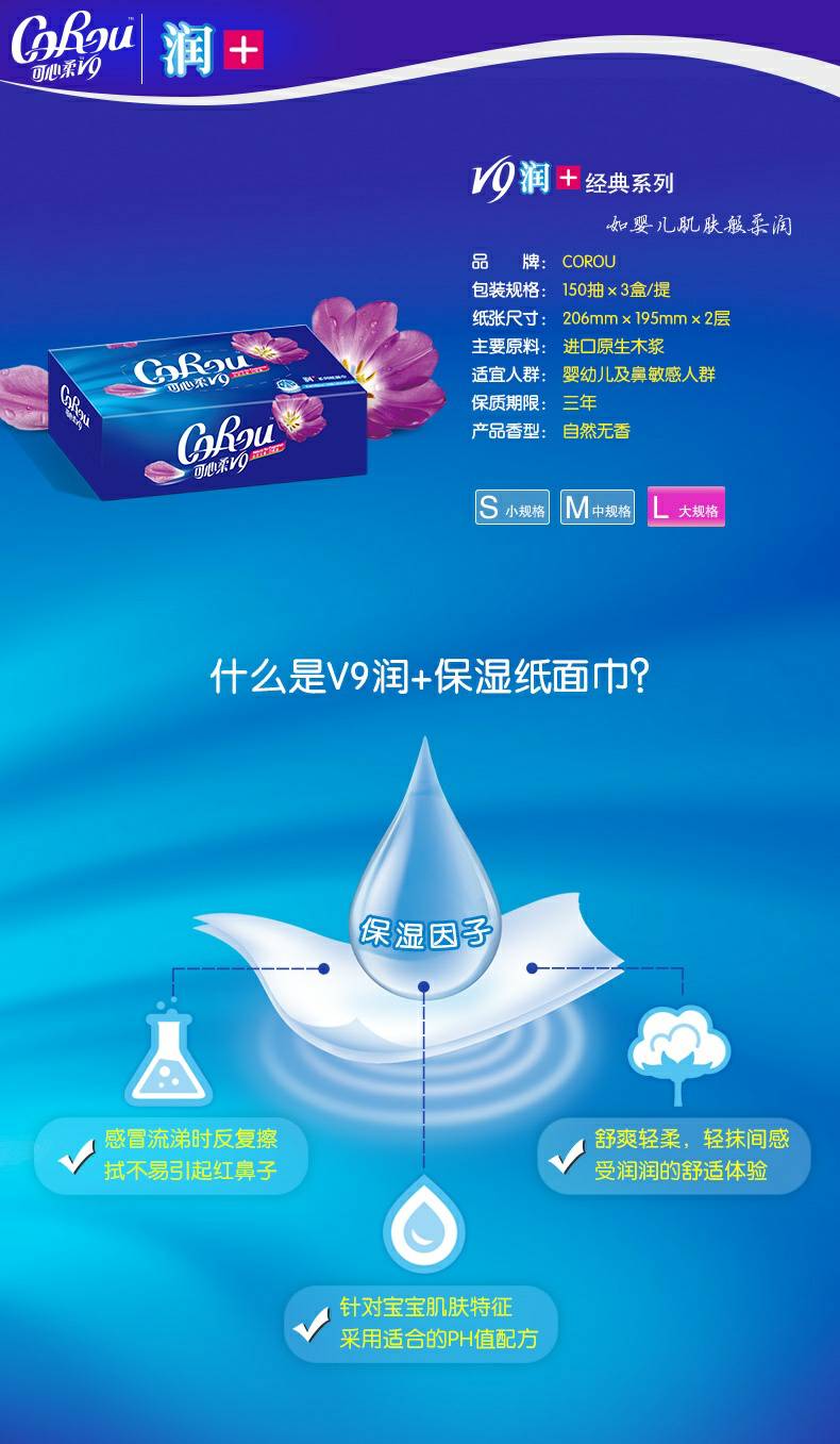 产品名称:Corou V9润+经典系列盒装面巾纸
